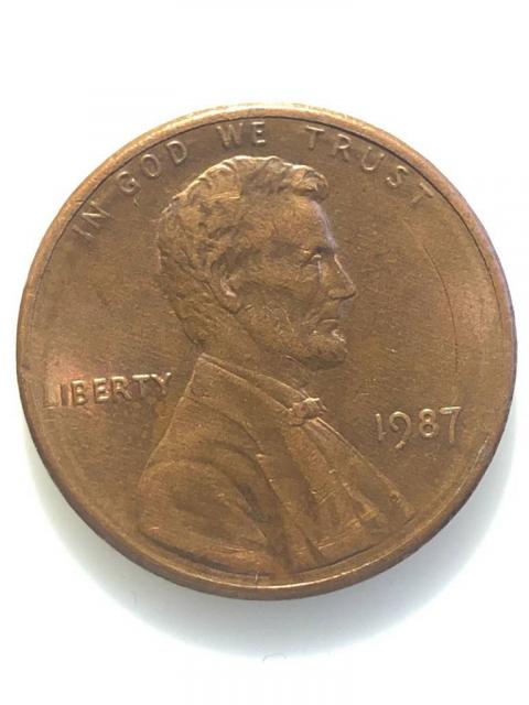 #672 США 1 цент 1987 Лінкольн Цент (Без мітки монетного двору)