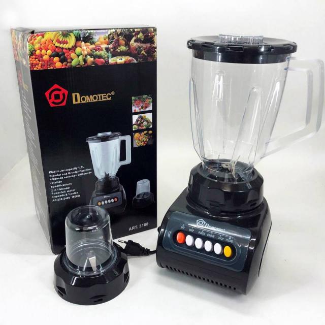 Блендер Domotec MS 9099 з кавомолкою – це чудовий стаціонарний блендер, який здатний подрібнити великі обсяги продуктів за кілька миттєвостей. Його великий глечик із пластику вміщує 1.5 л. Всередині глечик маса циркулює у горизонтальному та вертикальному напрямках, гарантуючи ретельне подрібнення.