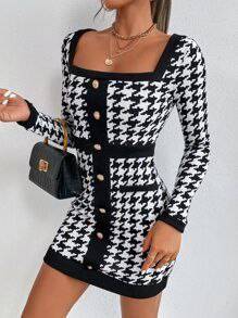 Стильна, красива брендова сукня з принтом «гусяча лапка» ТМ SHEIN. Легка, стрейчева, добре тягнеться, з золотими ґудзиками. Гарно сідає по фігурі. Склад: поліестер – 95%, спандекс – 5%. Стан - ідеальний.