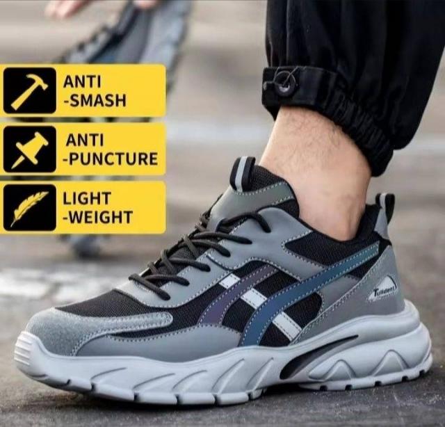 Кроссовки с усиленным носком -вставкой,антипрокольной подошвой,водостойкие и надежные.Обувь для нагрузок на износ.Неубиваемая прочная и не тяжелая.Размеры 42,27см стелька и 43,27,5см.стелька.Со светоотражающими полосами.