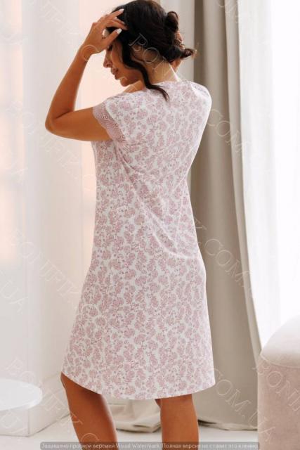 Сорочка украшена утонченным флористическим принтом в спокойных розово-бежевых оттенках, благодаря чему выглядит женственно и нежно.