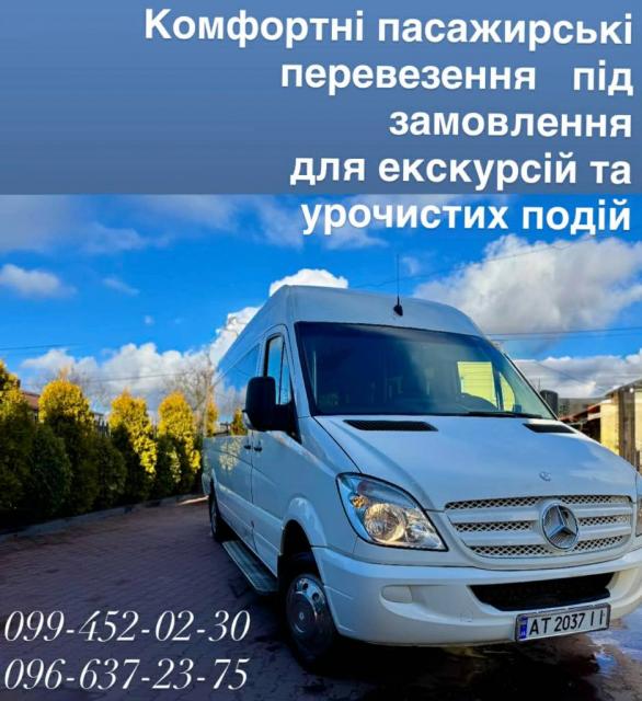 Надаємо послуги пасажирських перевезень.Комфортно, якісно. Маємо 20-ти і 30-ти містні автобуси, буси. Професійні водії, комфортабельні автобуси з кондиціонером.