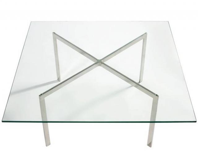 Стіл журнальний, проста, елегантна та дизайнерська модель, cтолешніца виготовлена із загартованого скла товщиною 12 мм, що робе її стійкою до подряпин, колір скла прозорий, основа столу металева з нержавіючої сталі, що робить усю конструкцію дуже міцною, розмір столу: ширина 100 см, глибина 100 см, висота столу 46 см.