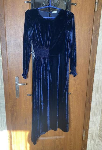 Одевали два раза на мероприятия. Очень хорошо скрывает изъяны фигуры в области живота, оригинальный фасон и благородный цвет. Подходит на размер S, M. Рукава с розрезами по длине. Пересылаю Укрпочтой НП после оплаты на карту