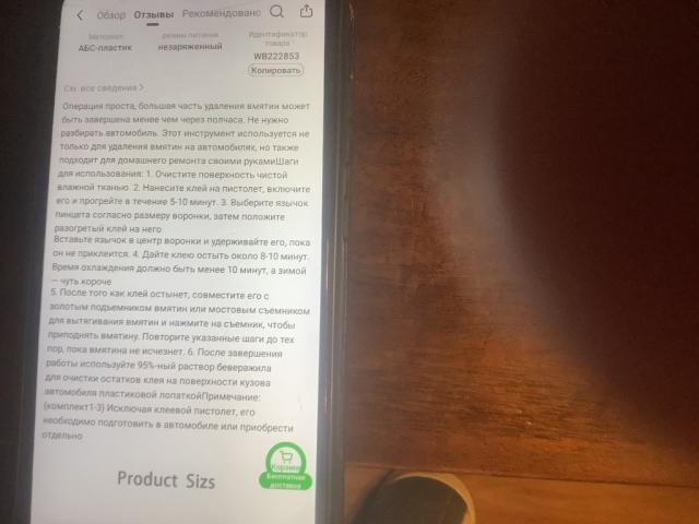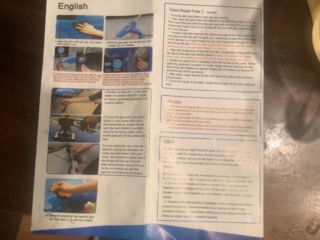 Инструкция прилагается.Операция проста,большая часть удаления вмятин может быть завершена менее чем за полчаса.