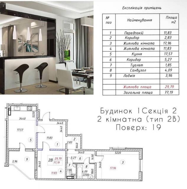 **Площа:** 77.19 кв.м.