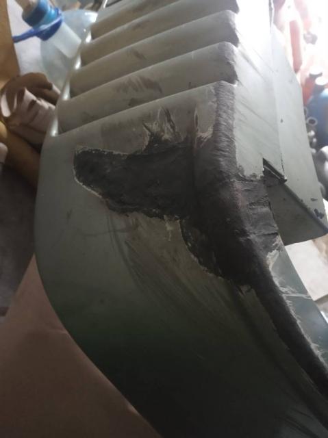 Заводского производства . Спойлер имеет следы пайки и частичной замены крепящихся шпилек. Снаружи имеются две решетки забора воздуха через внутренние диффузоры для лучшего охлаждения радиатора. Также снаружи со смещением имеется тех.лючек.