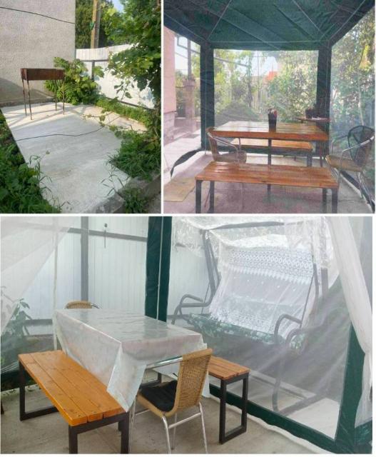 В дворі мангал + дрова.
